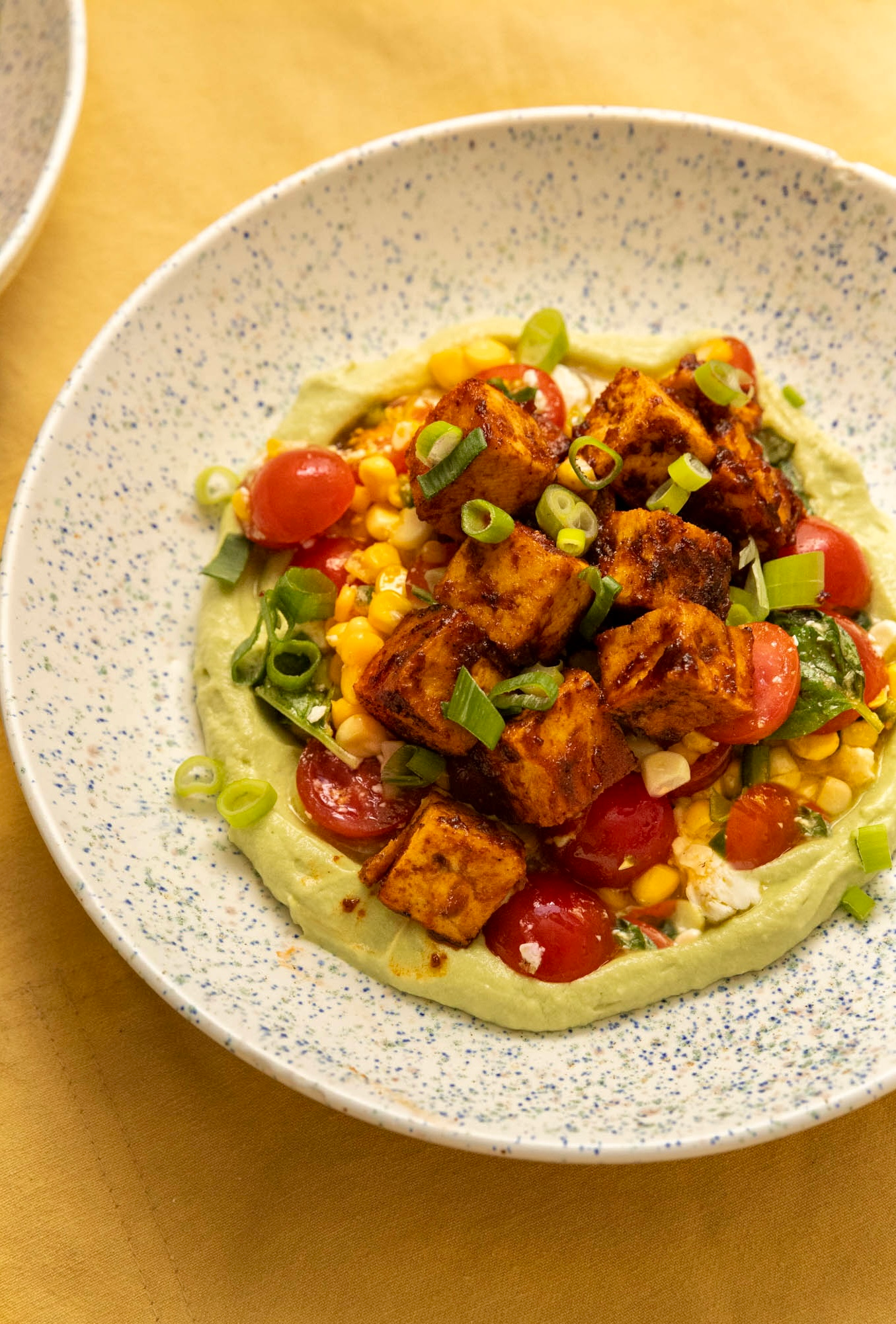 - Serve. Divide the avocado cream among 4 bowls, top with the salad, and finish with BBQ tofu on top.