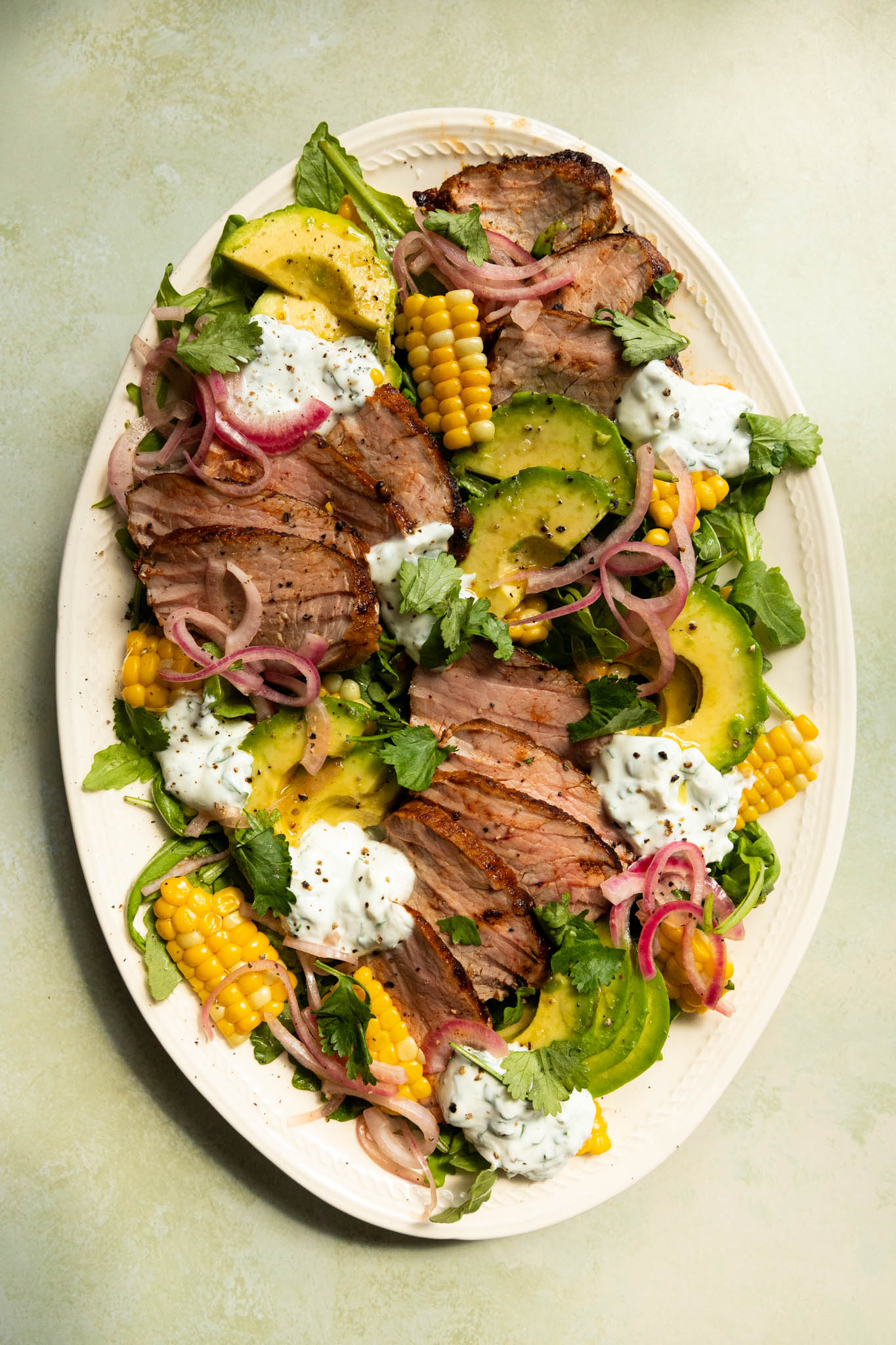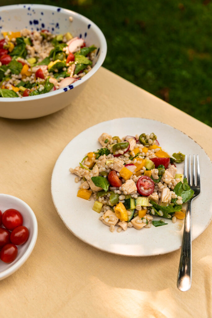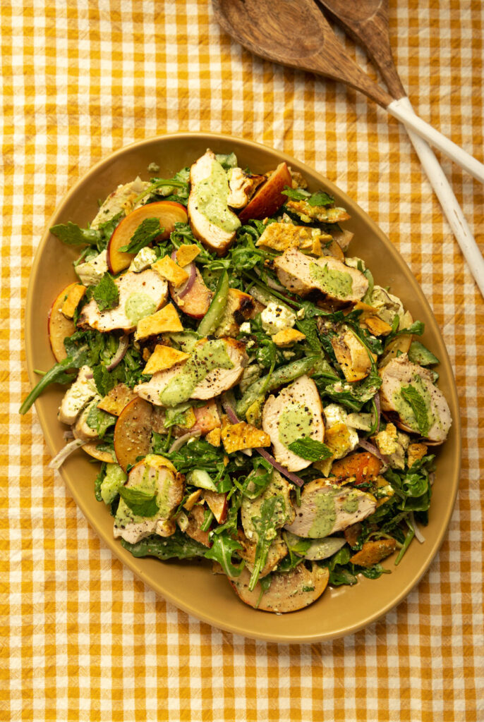 Arugula and Nectarine Chicken Salad with Basil Dressing