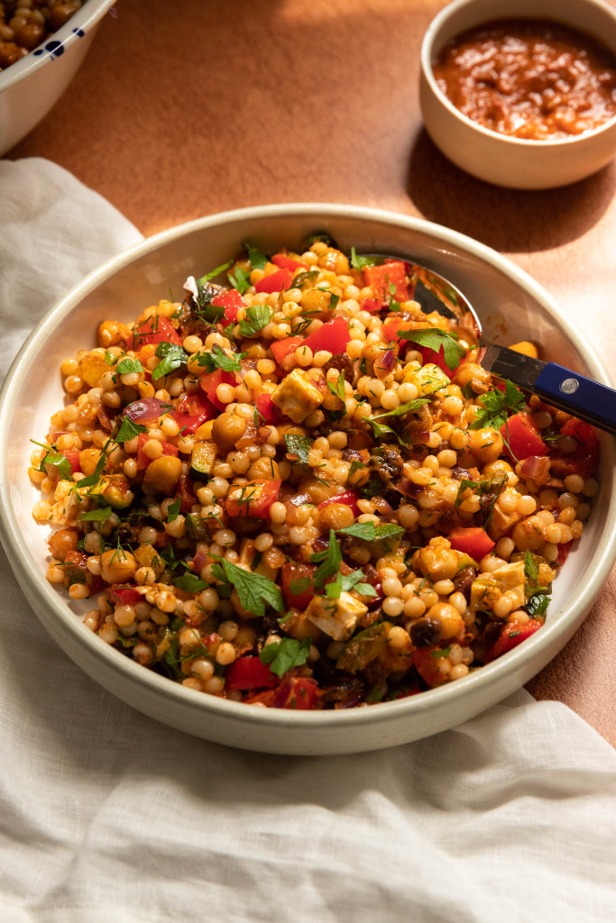 Roasted Veggies Pearl Couscous Salad with Sundried Tomatoes