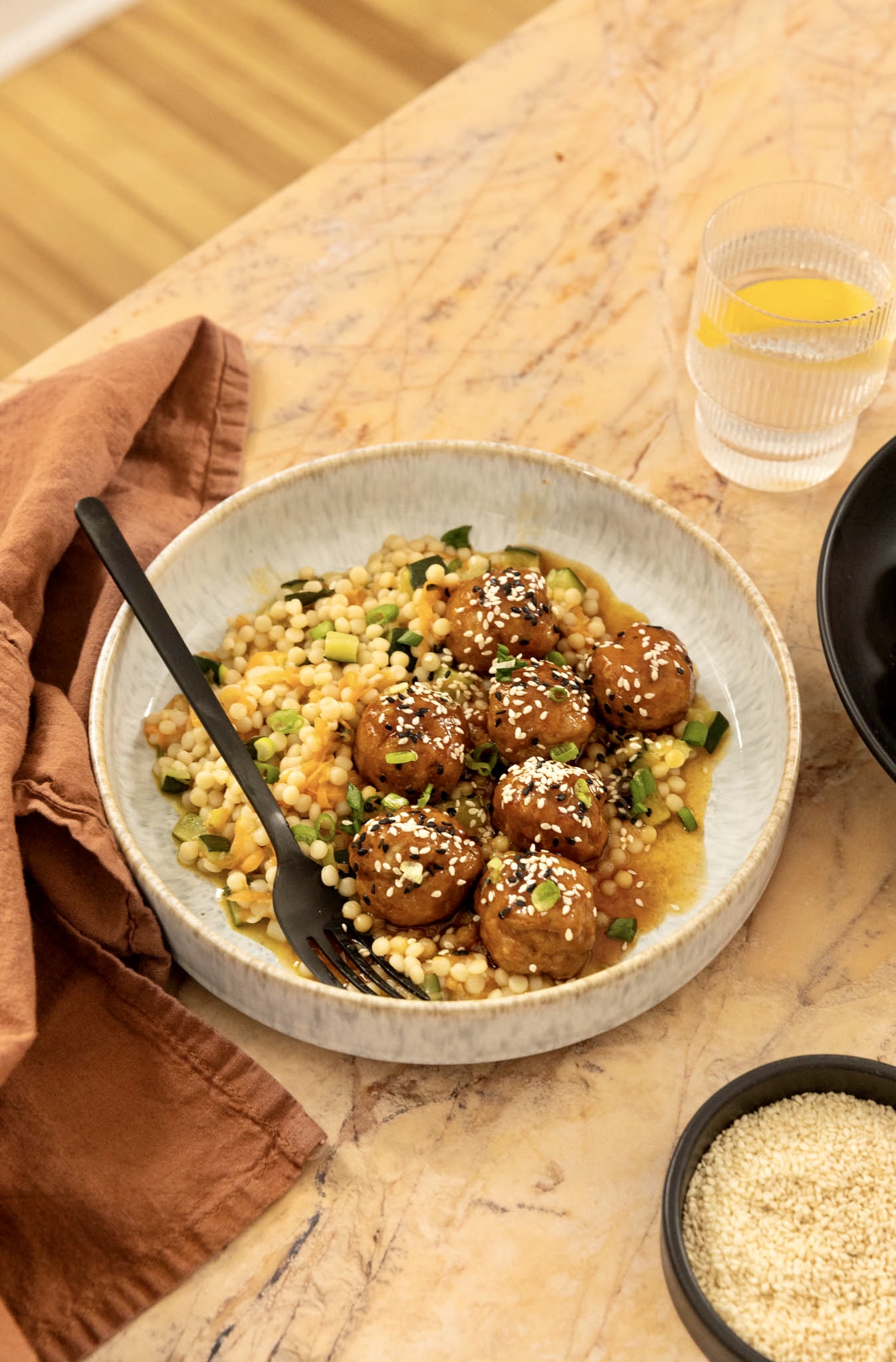 Pork Meatballs with Honey-Soy Sauce and Pearl Couscous