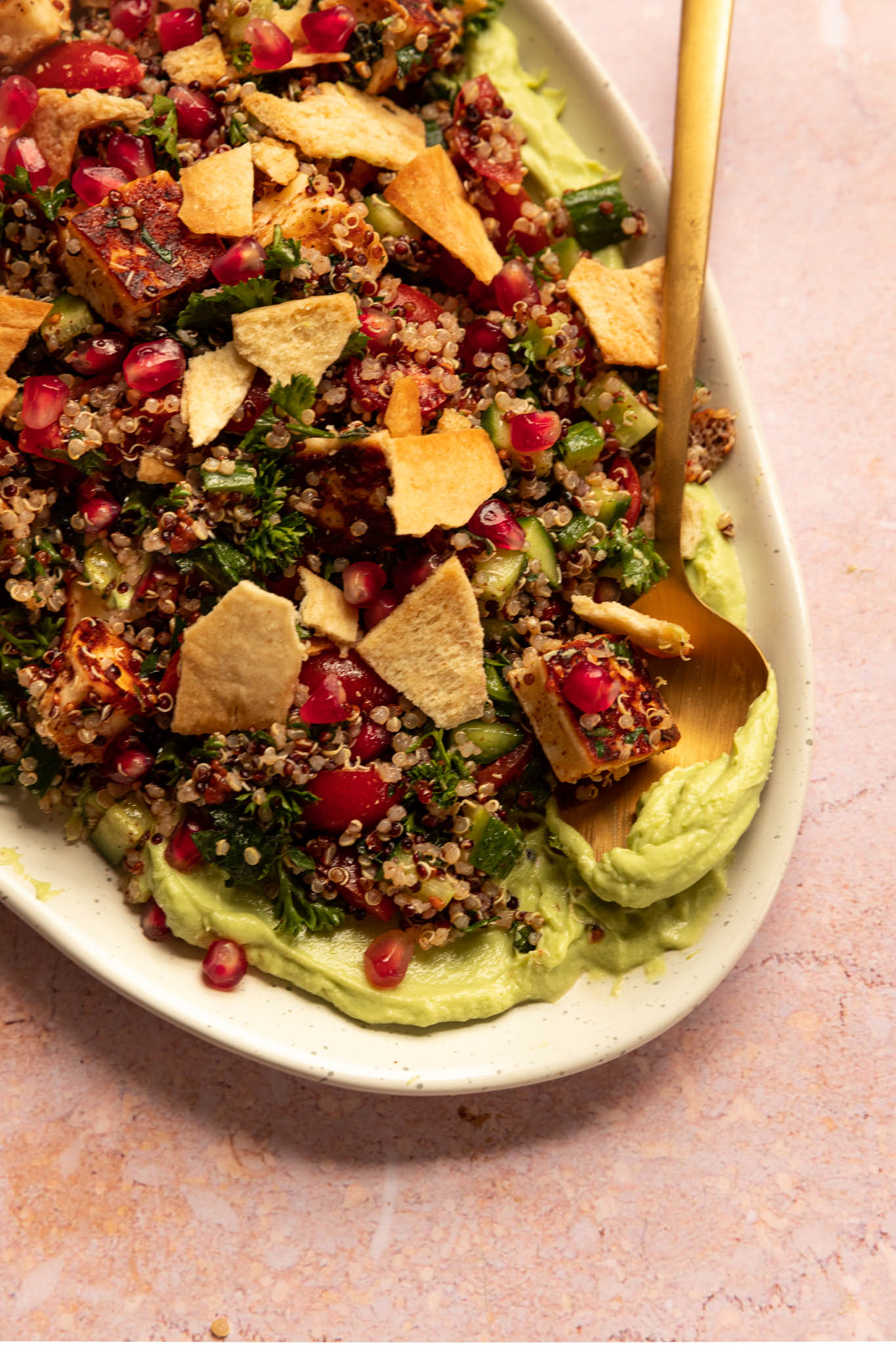 Quinoa & Halloumi Salad on Avocado Crema