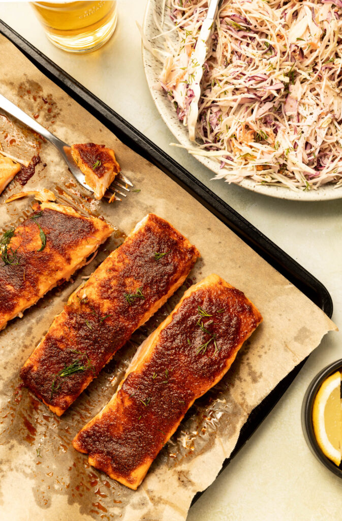 Saumon aux épices BBQ et salade de chou à l’aneth