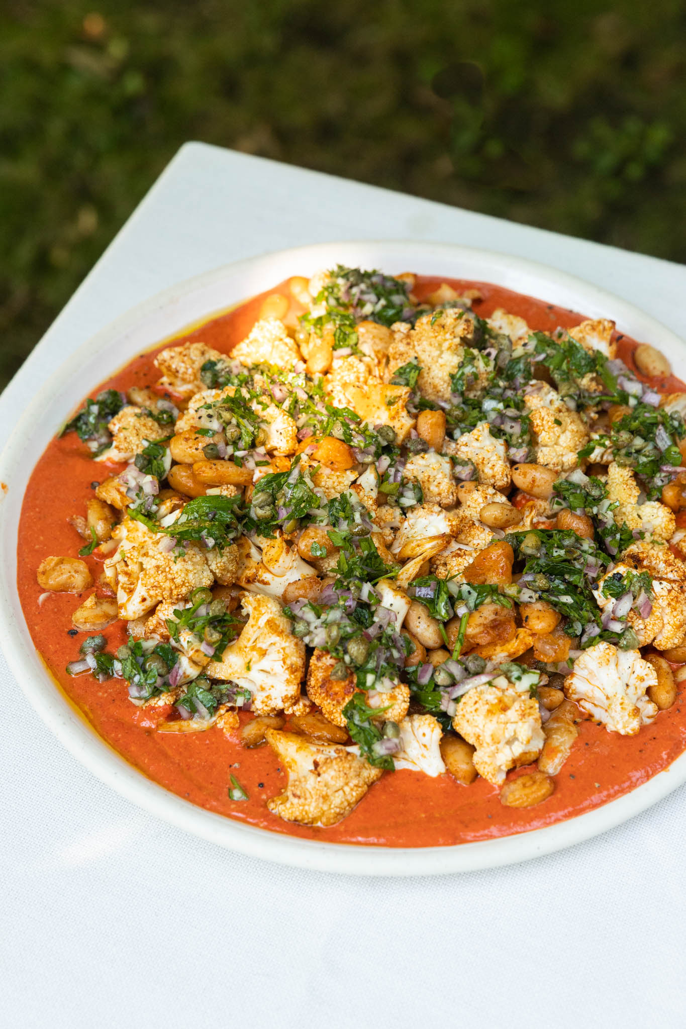 Chou-fleur rôti et haricots blancs, sauce poivrons cajou