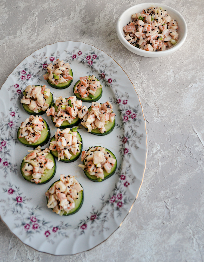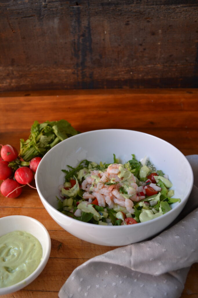 Salade de crevettes nordiques, vinaigrette crémeuse à l’avocat