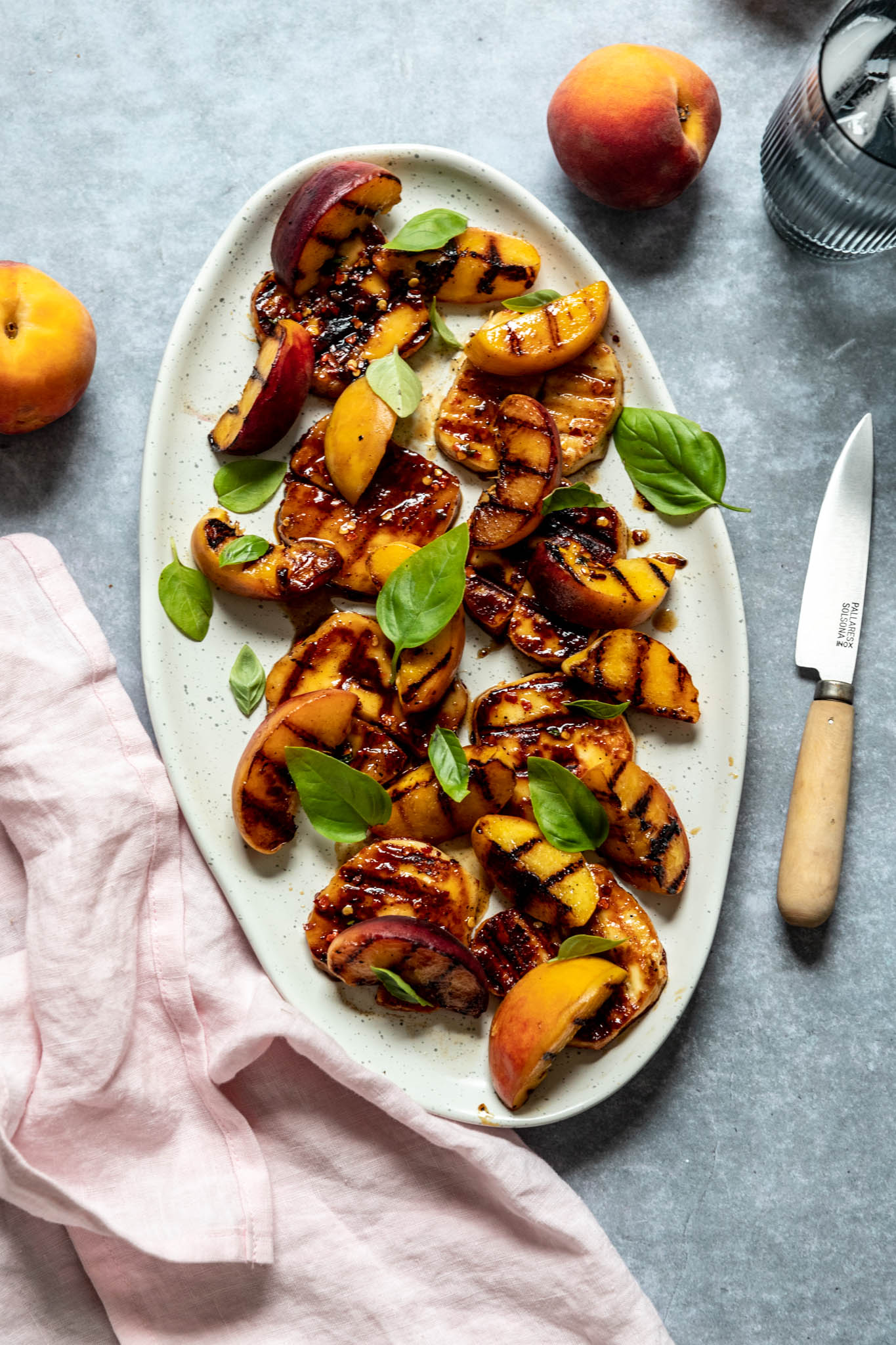 minutesUn plateau estival qui met en valeur les pêches sucrées et caramélisées, avec le contraste du goût salé du fromage halloumi qui est également cuit dans un miel épicé.