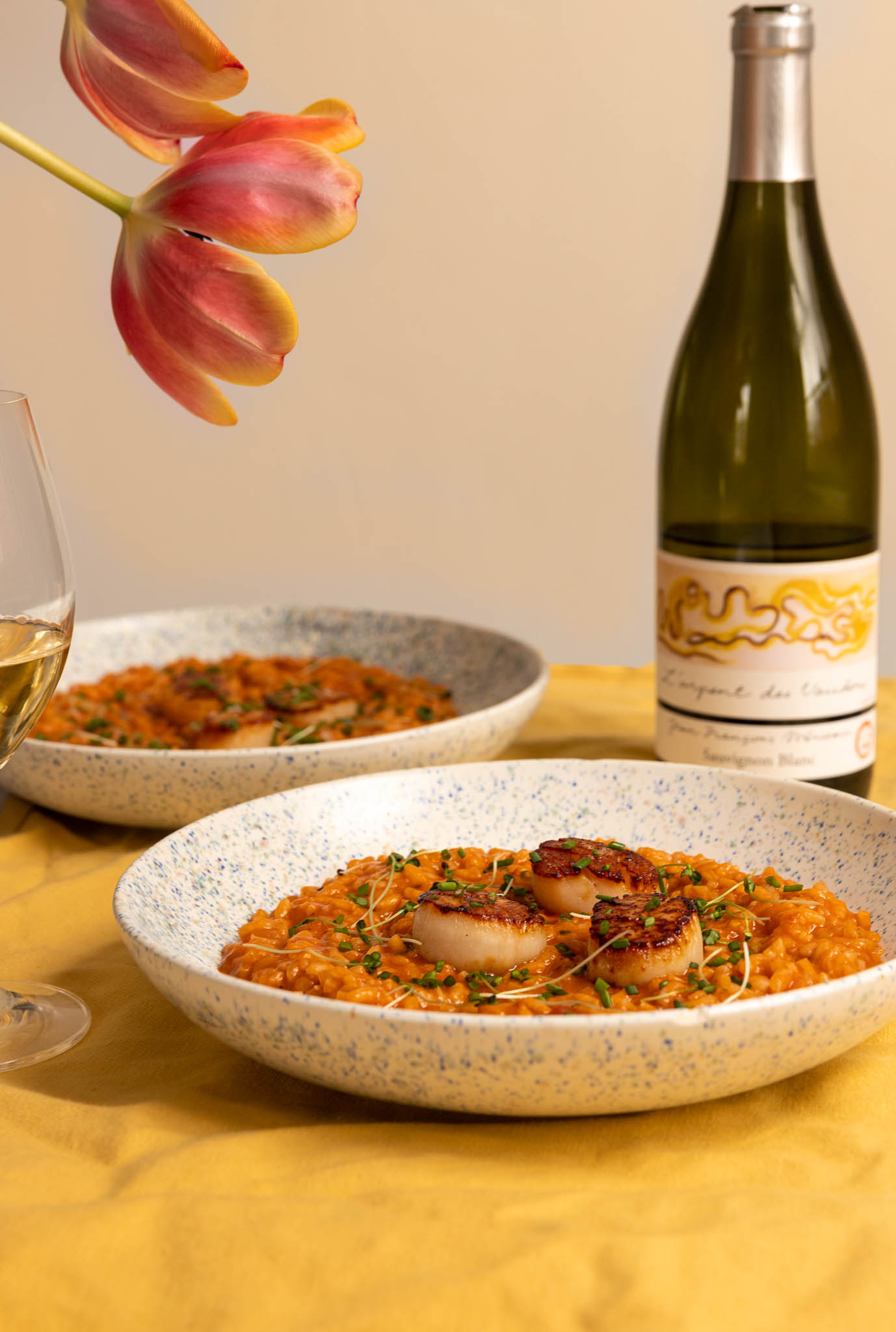 Risotto à la tomate et pétoncles poêlés